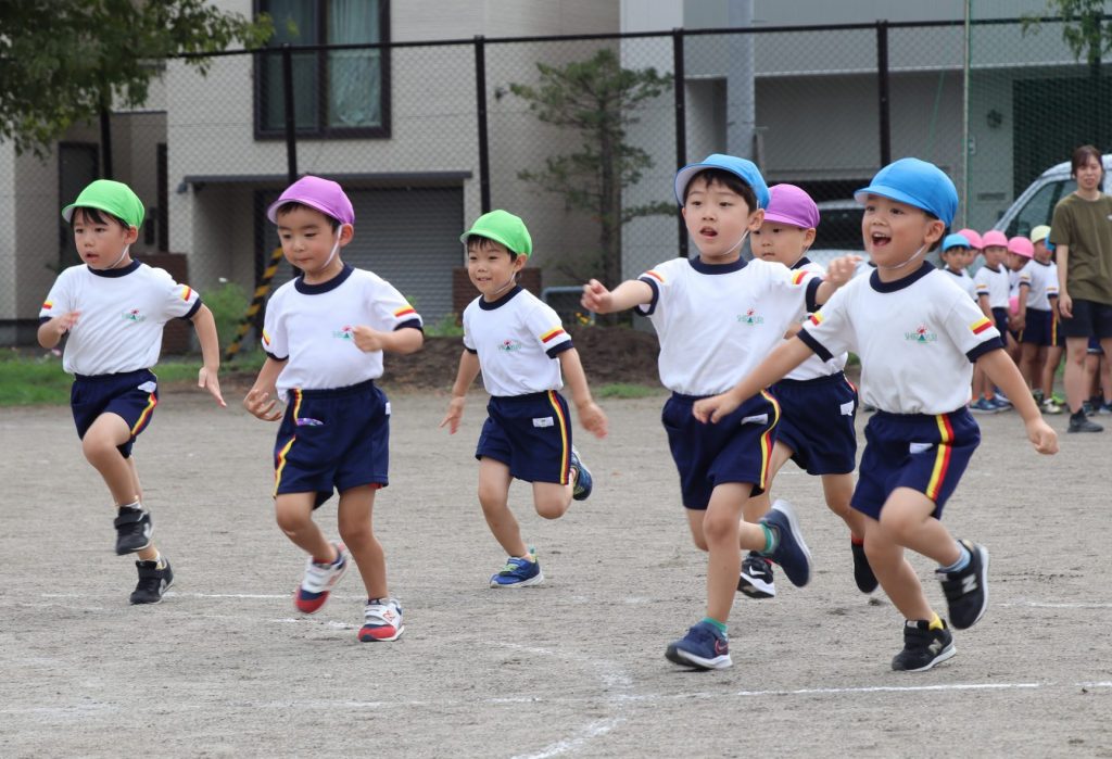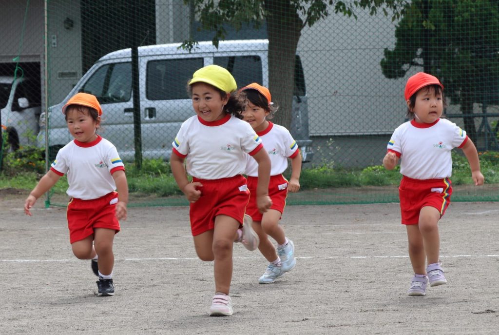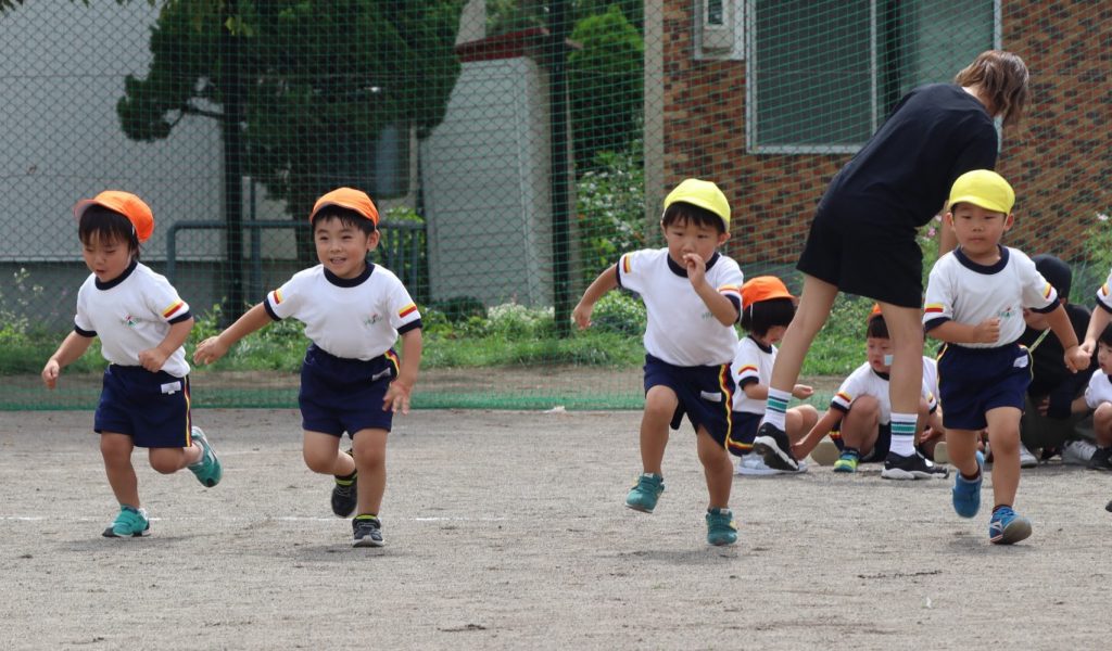 プログラム①、全園児による「かけっこ」です😄