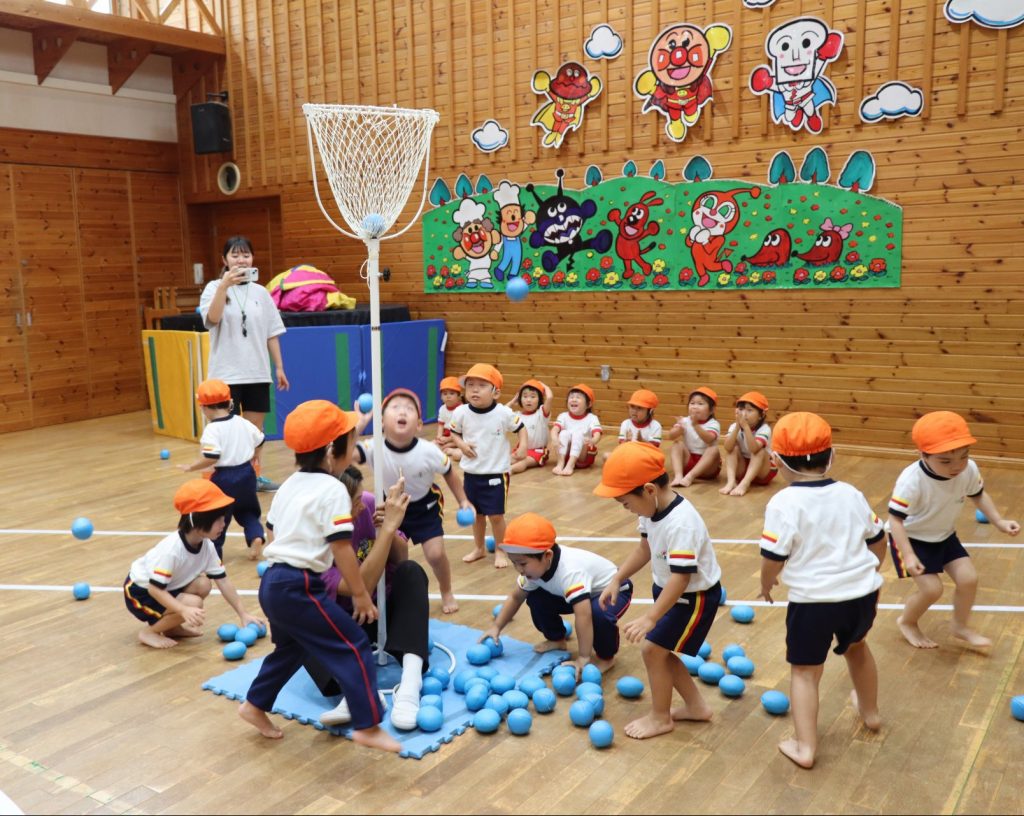 ホールでは年少児達の「玉入れ」が始まりましたよ😚