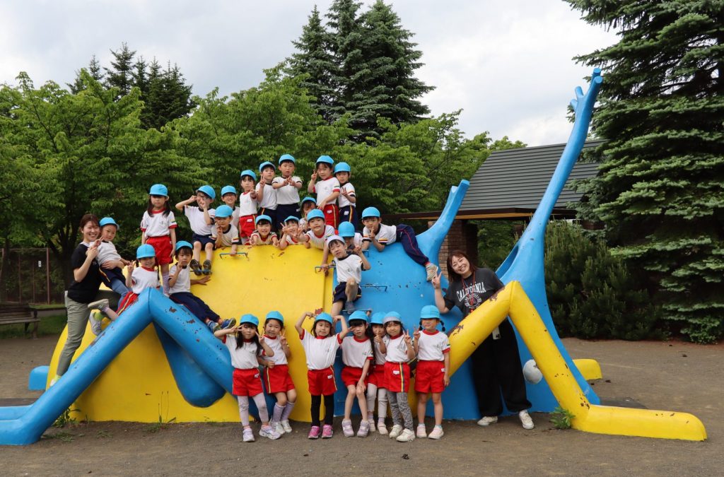 園長からのメッセージ通り、公園の大型遊具で存分に楽しむ年長児達です😍