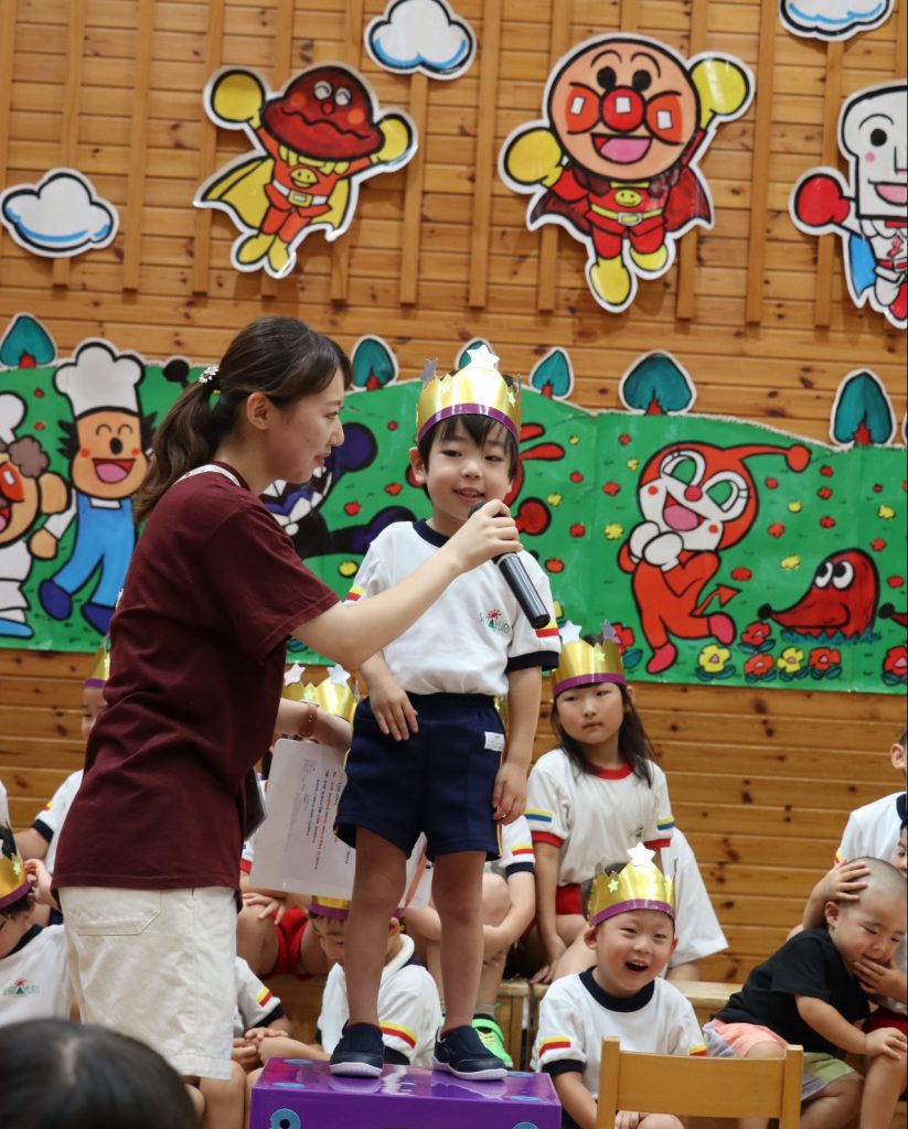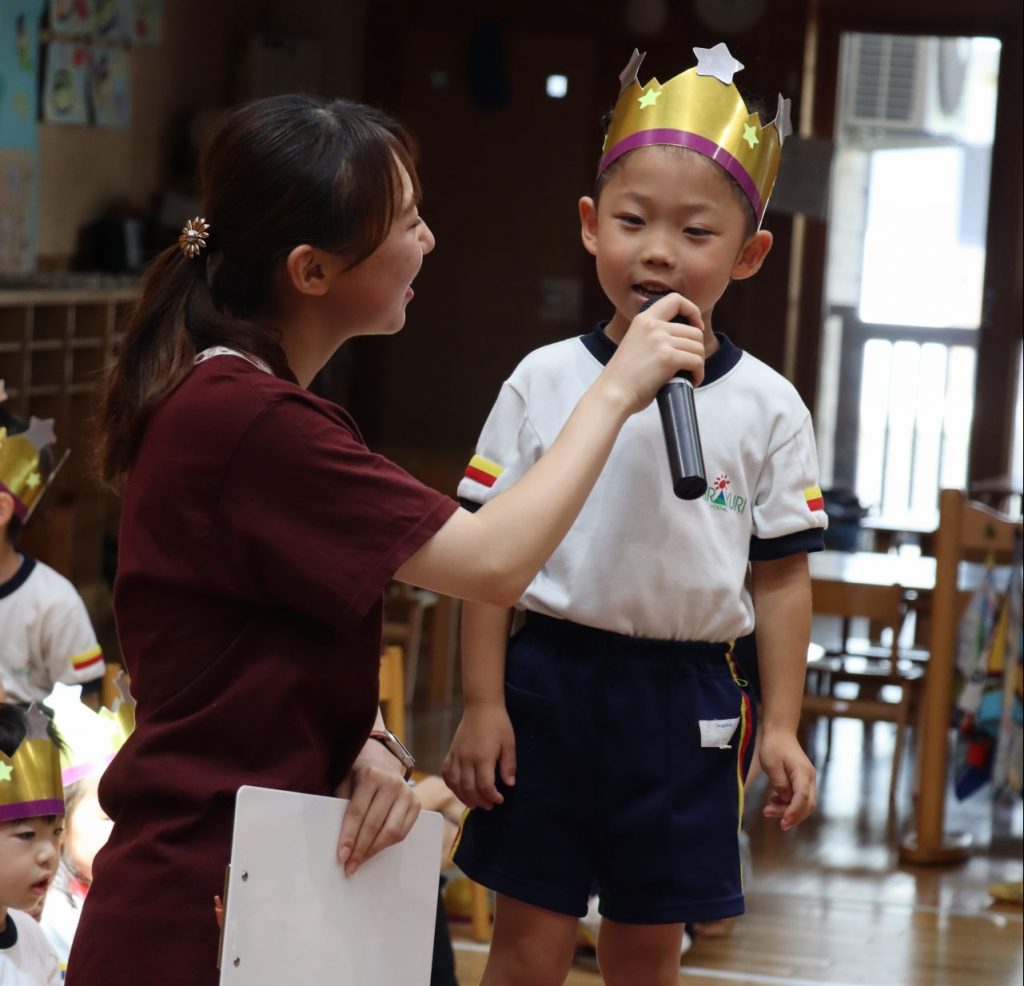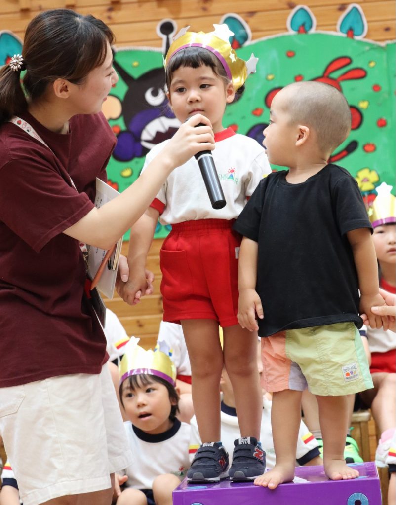 8月生まれのお友達のお誕生日を祝う「お誕生会」の様子です😄
