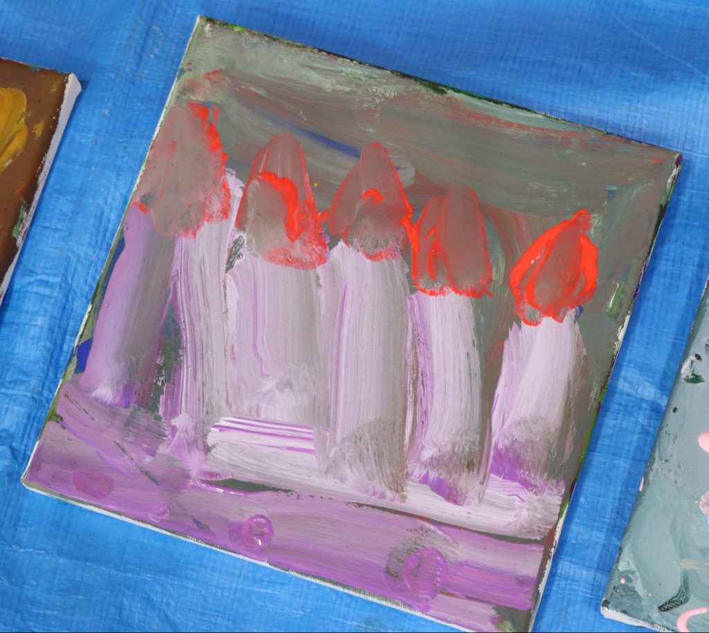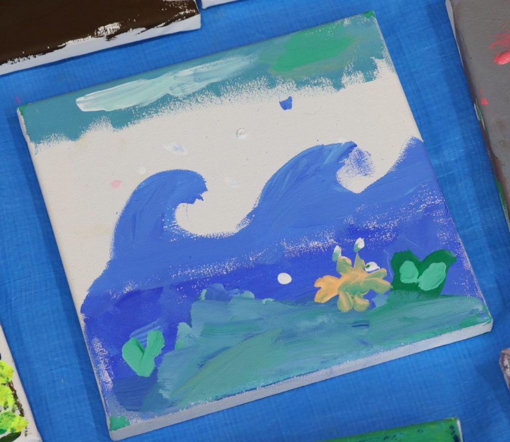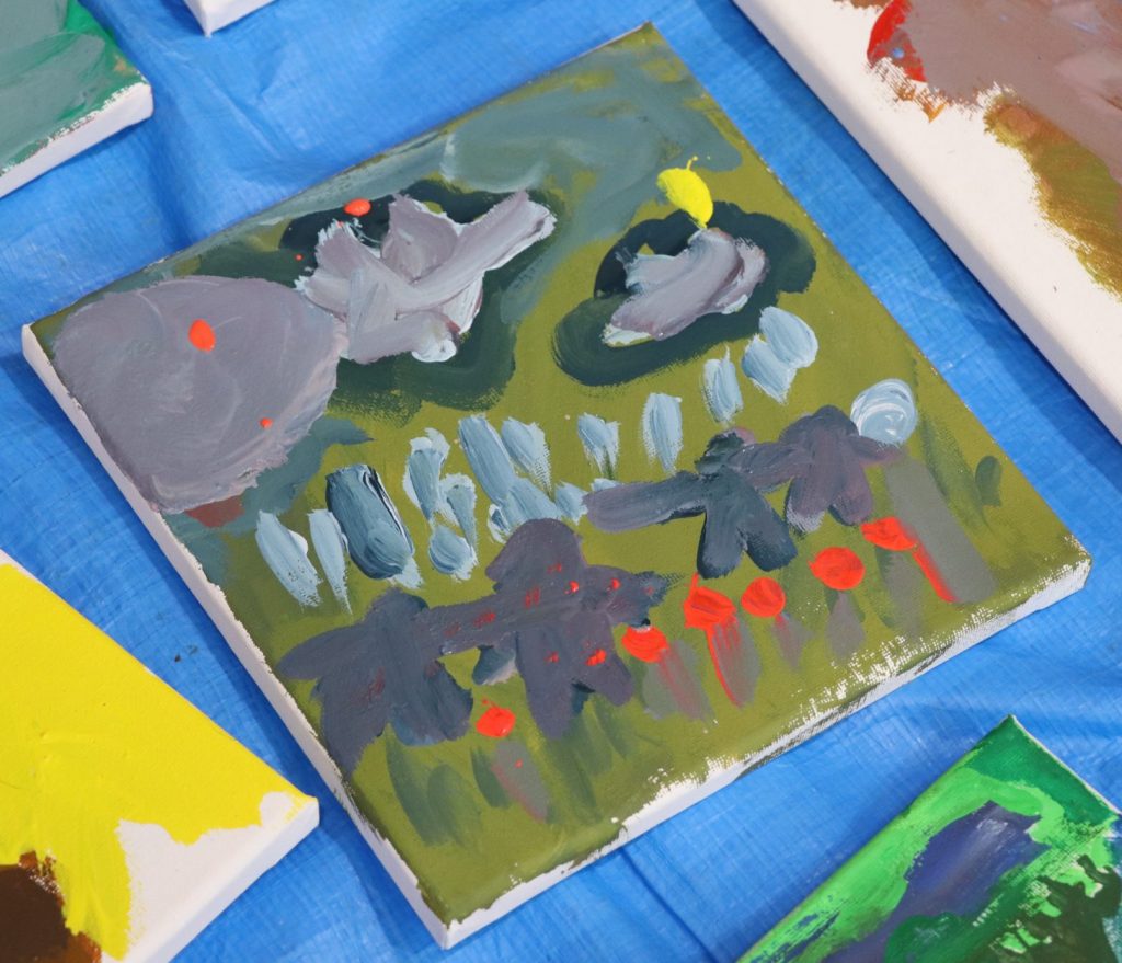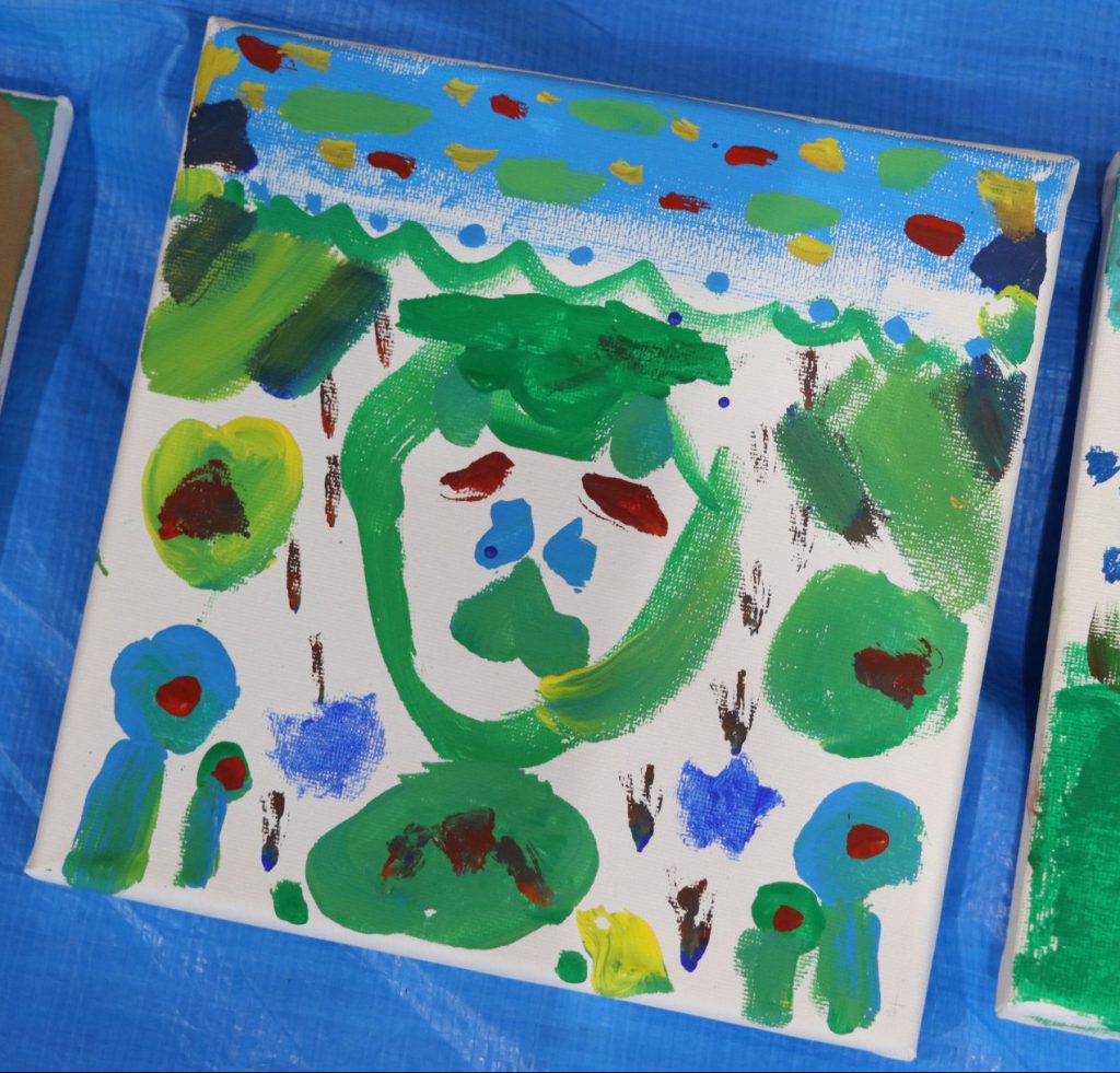 最初は一人一人にキャンパスが… どんな絵が出来上がるかな?!
