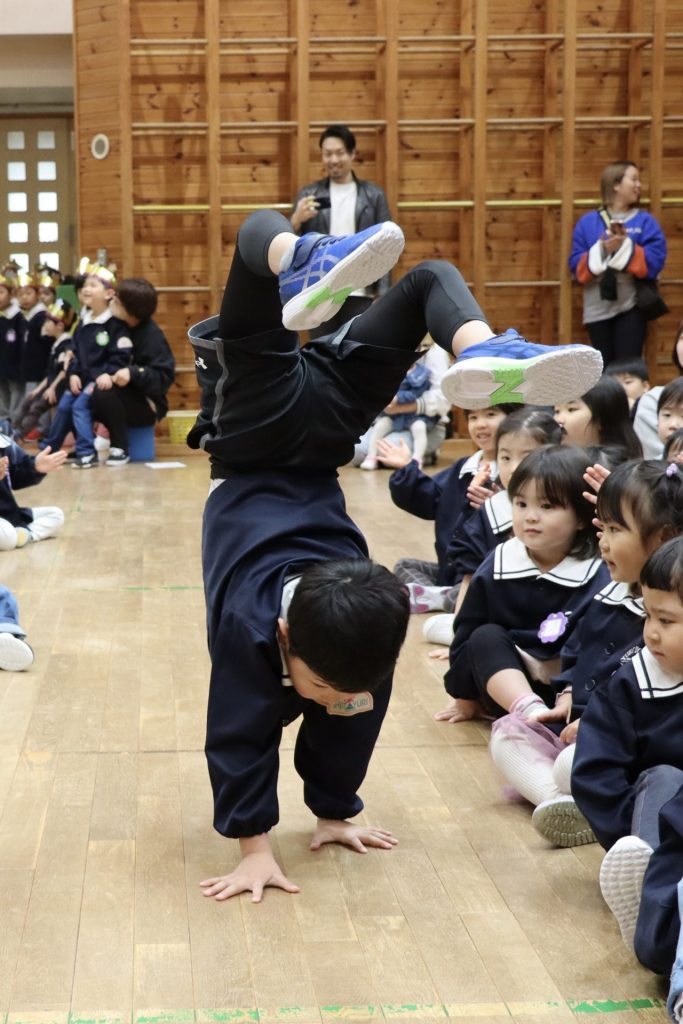 早速、逆立ち歩きで入場してくる年長児… この姿に憧れて、年少・中児達が「逆立ち名人」を目指し始めまるのです(笑)