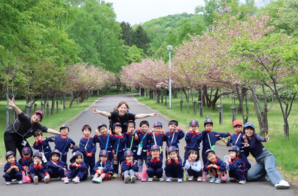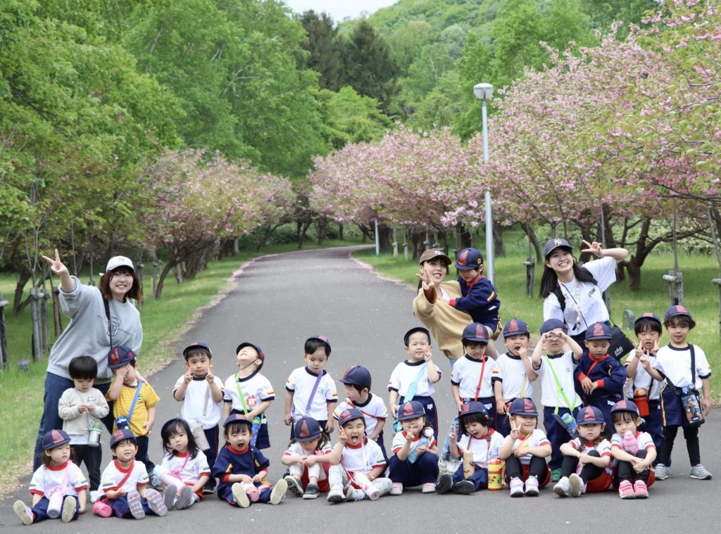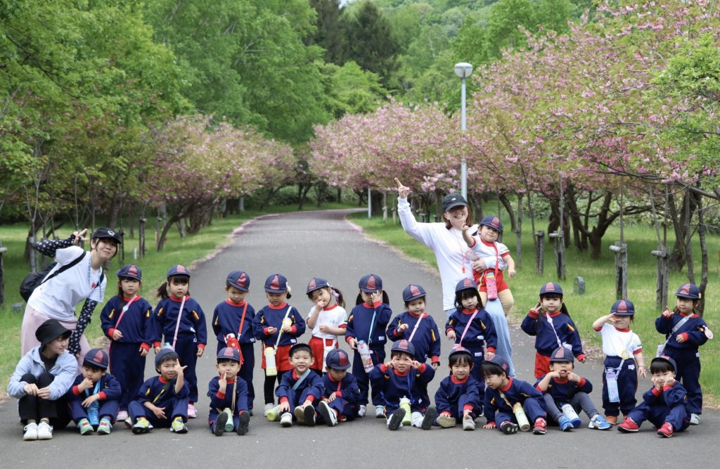 この日の園外保育は、年少児達が真駒内公園で体力作りを兼ねた「歩く練習」です😊