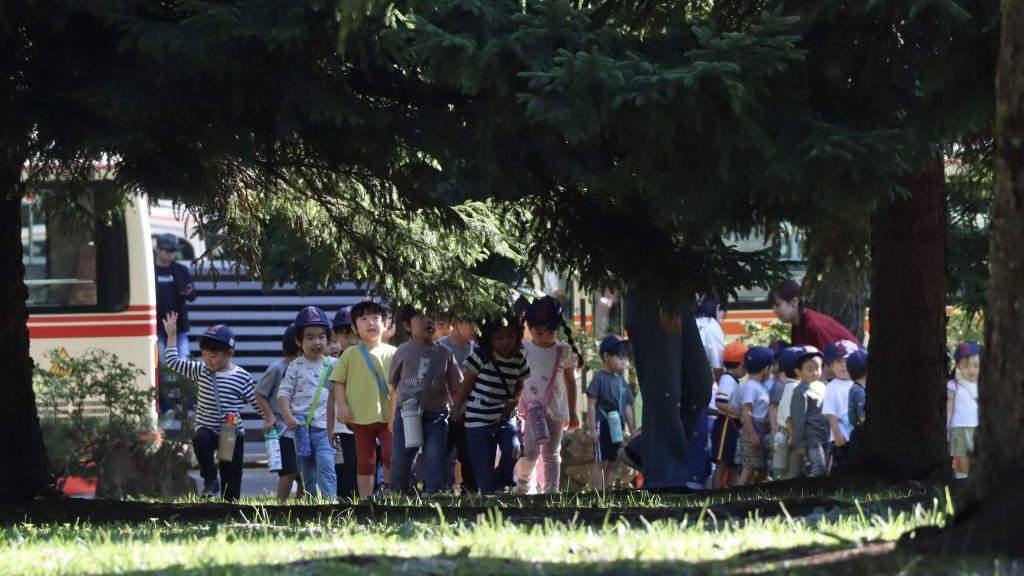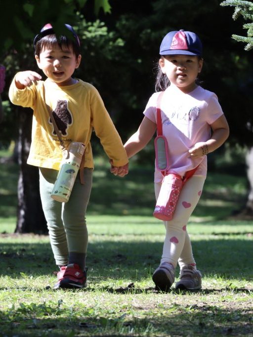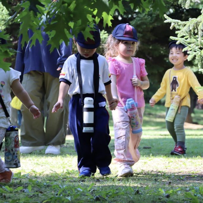紅葉にはまだ早い木々を抜けて、およそ1時間の散歩を楽しんだ子供達😄