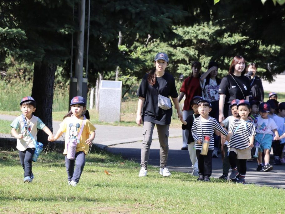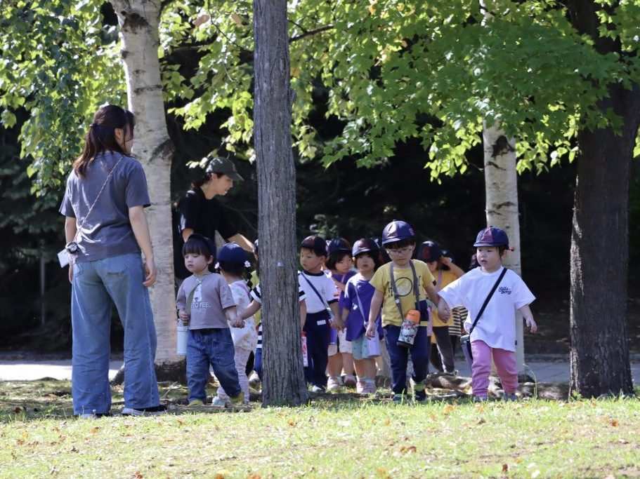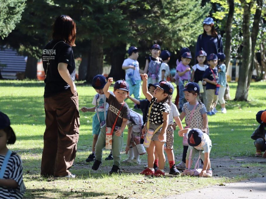 「小さな秋」を見つけようと意気込む子供達ですが… この日の気温は25度に迫る暑さ…😣 例年だと一気に紅葉が進み秋の気配を感じる時期ですが、初夏のような陽気に、秋を感じるのはもう少し先になりそうですね😔