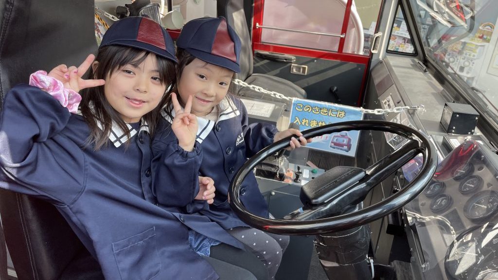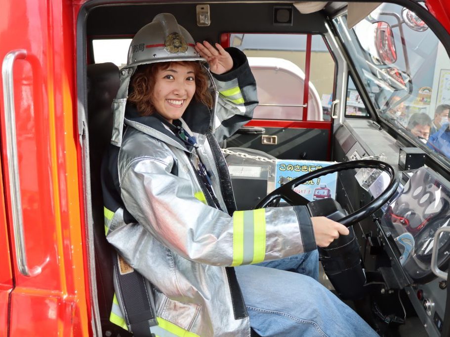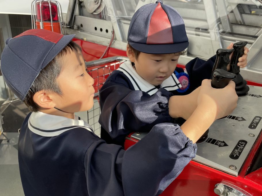 ハシゴ車の運転席や操作ハンドルも体験させてもらいました🥰