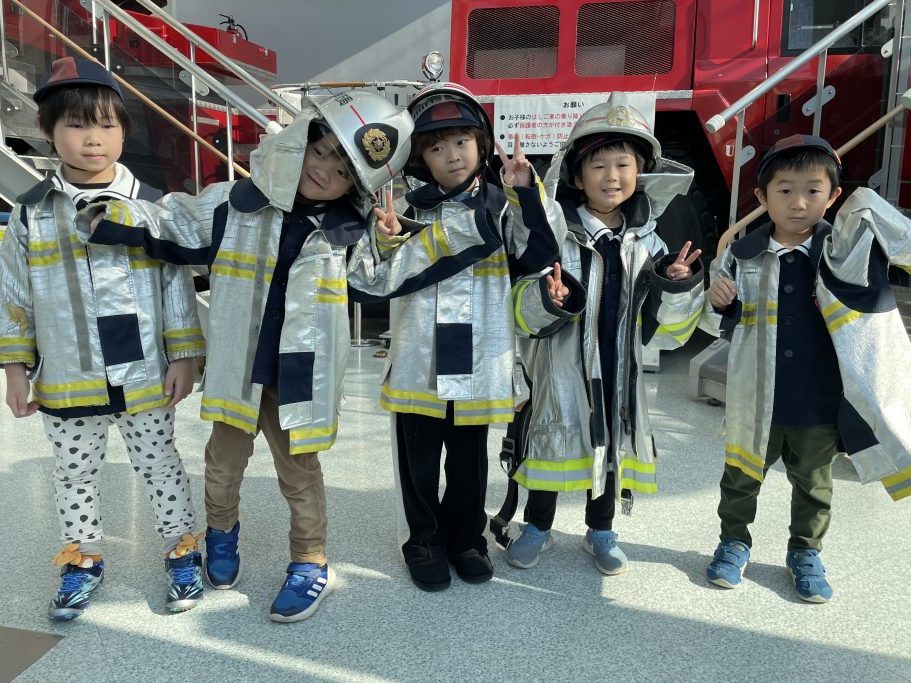 子ども達にとって消防士は憧れの職業の一つ! 「かっこいい!」「消防士になりたい!」と目を輝かせていました😍