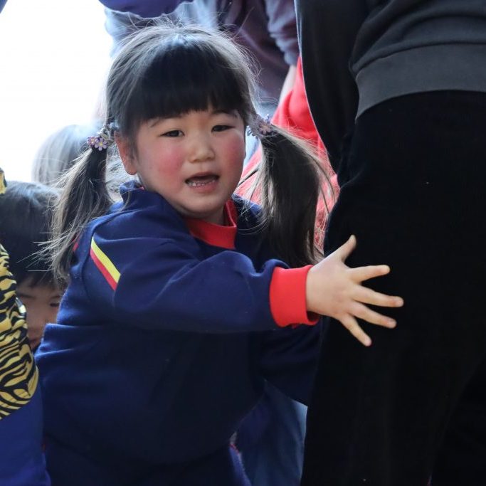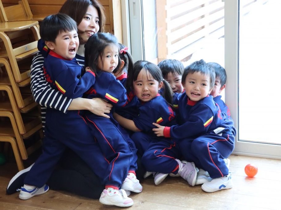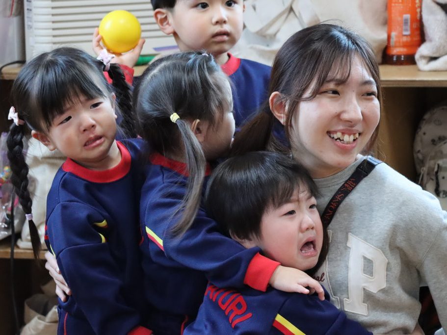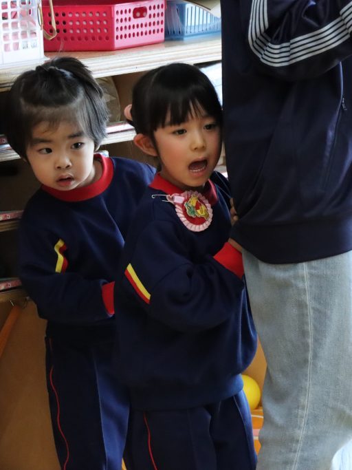 驚いて涙を流す子、教師の後ろに隠れてギュッとしがみつく子…😄