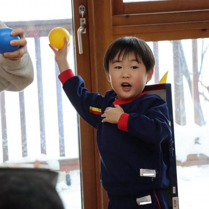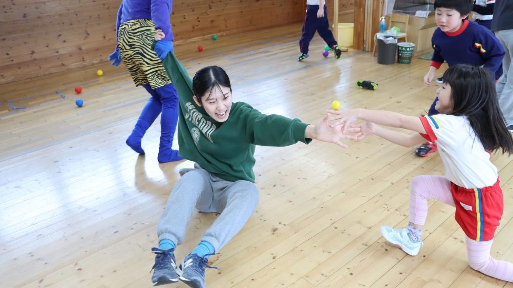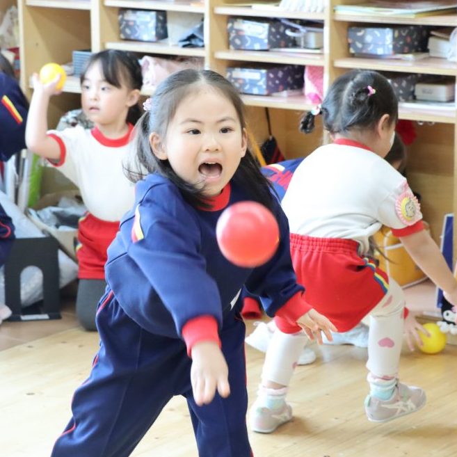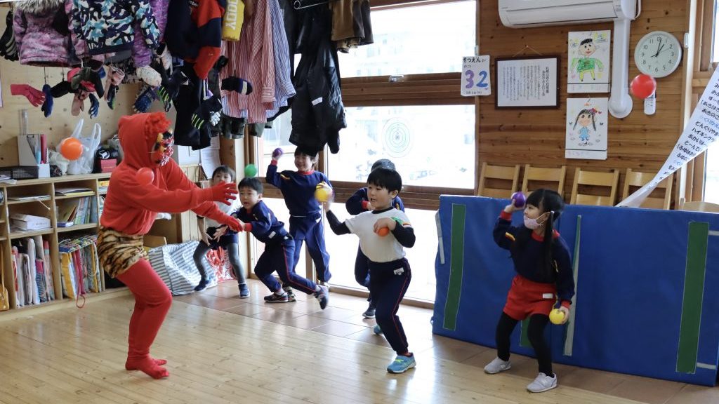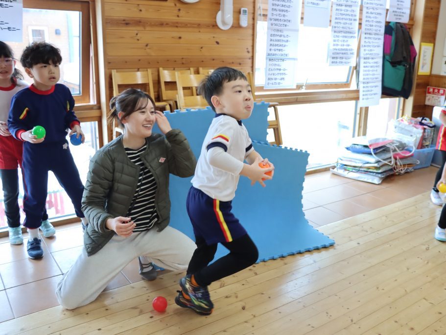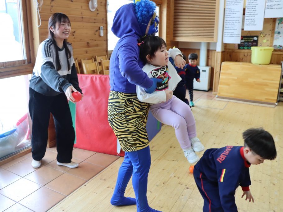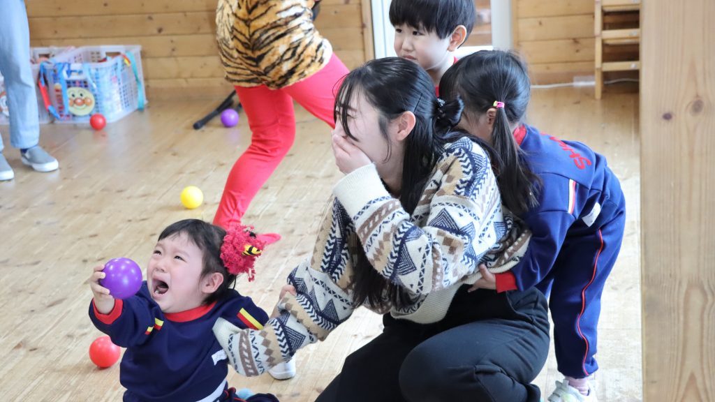 「鬼は外!」一生懸命にボールをぶつける小さな手… 怖さの中にもお友達と一緒だからこそ味わえる楽しさがあります😄