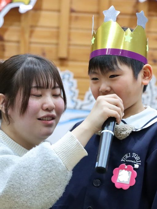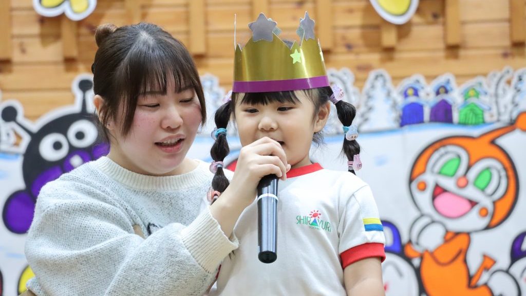 お誕生会恒例の「歌のプレゼント」は、いよいよ白ゆりっ子達のリーダー年長児達の登場です✨