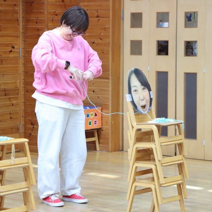 年中児担任達のゲームは「毛糸早巻対決」です😁