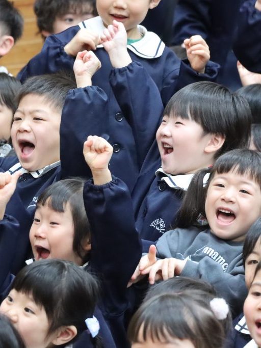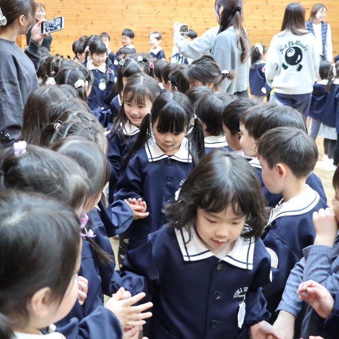 そして最後は、在園児達が “花道” を作り、年長児達を “ハイタッチ” でお見送り😁 笑顔の中に、少しだけ滲む寂しさ…😞