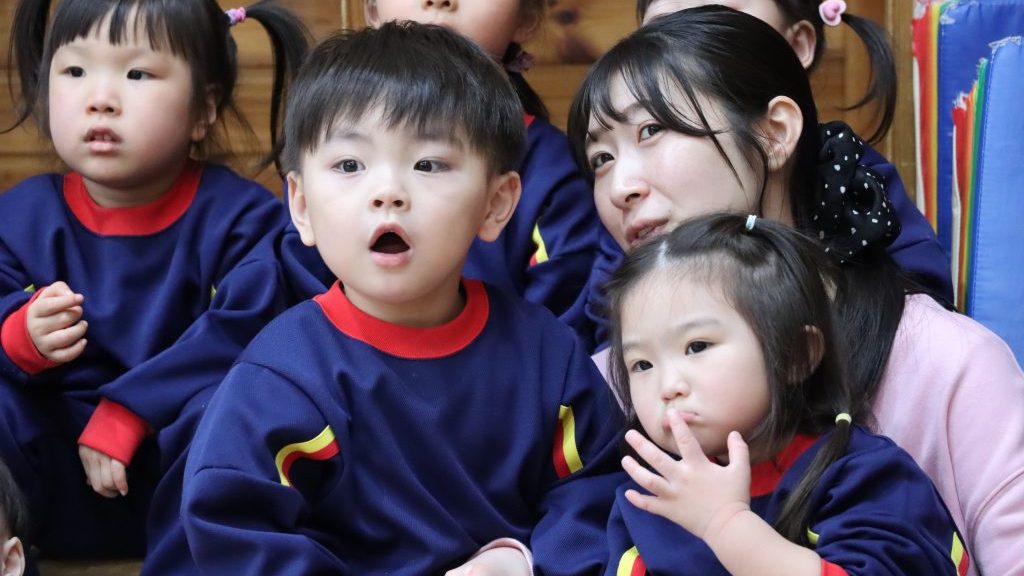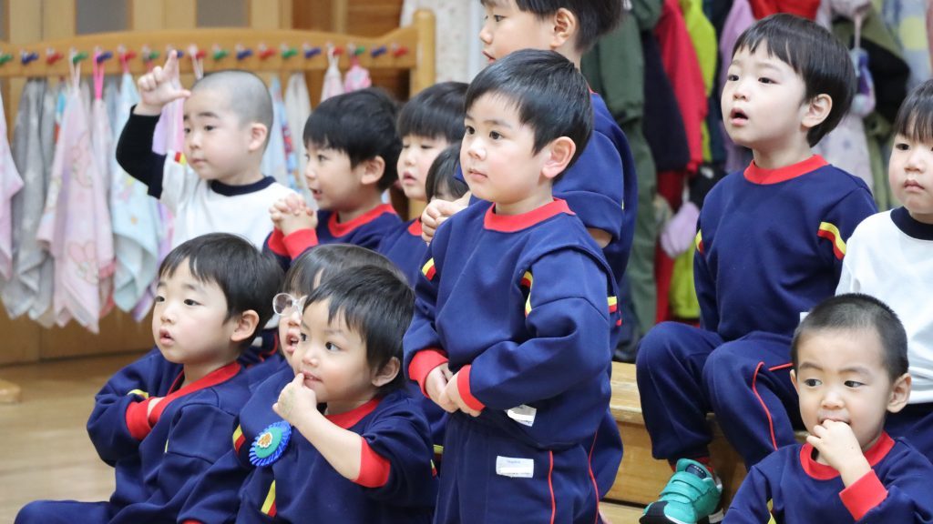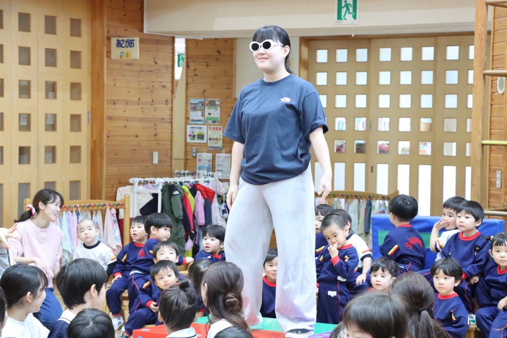 全身を揺らす教師達のコミカルな動きにつぼみぐみの子ども達の反応は…