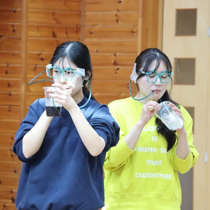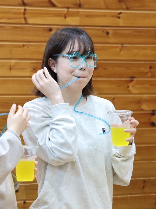 「ハーハー ゼーゼー😖」 全力ダンスで息を切らしているので、ストローでジュースを飲むのも一苦労😫