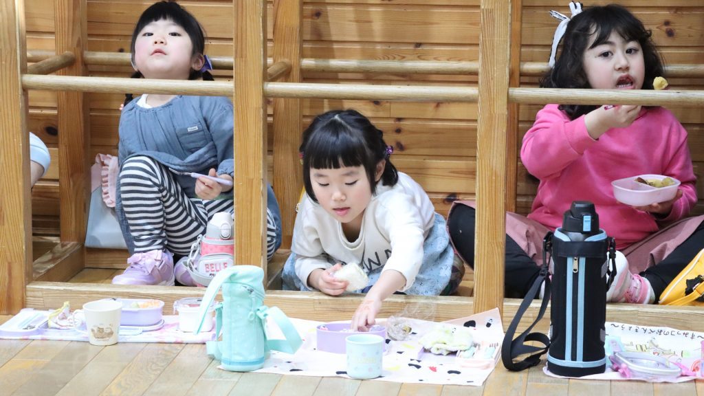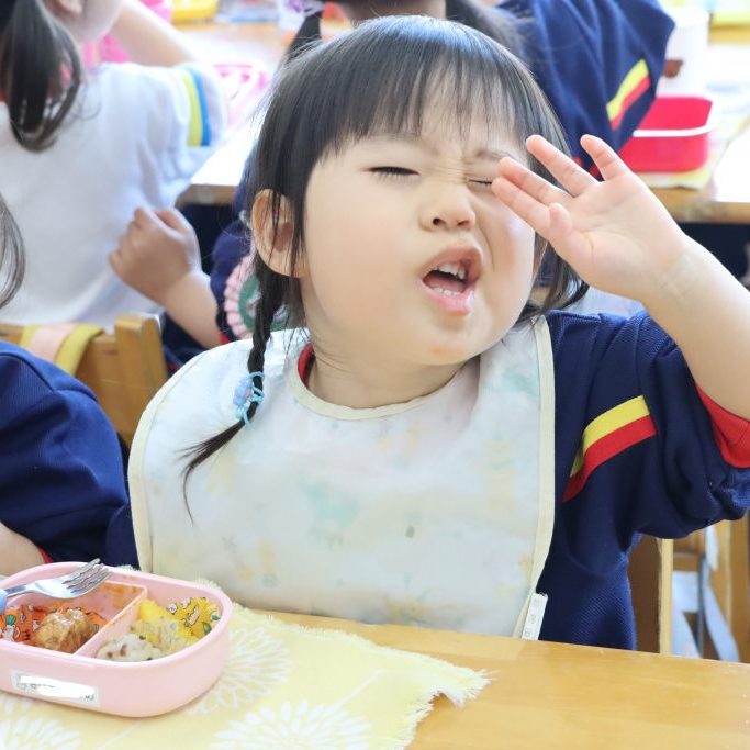 きくぐみの子ども達は… というと、「あの二人、何、のんびり味わって飲んでるの?! ゆりぐみもももぐみもとっくに飲み終わっているよ😒」