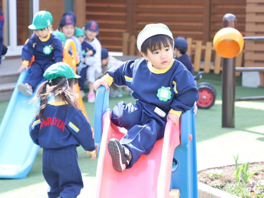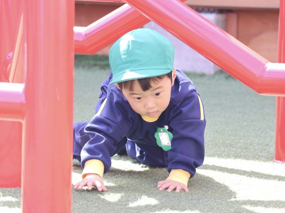 天気の良い日には園庭に出て、開放感あふれる空の下で過ごします🥰 春の柔らかな風を感じながら好きな場所へ歩いて行ったり、気になる遊具にそっと手を伸ばしたり、土や花に目を向けたりする姿が見られますよ😊