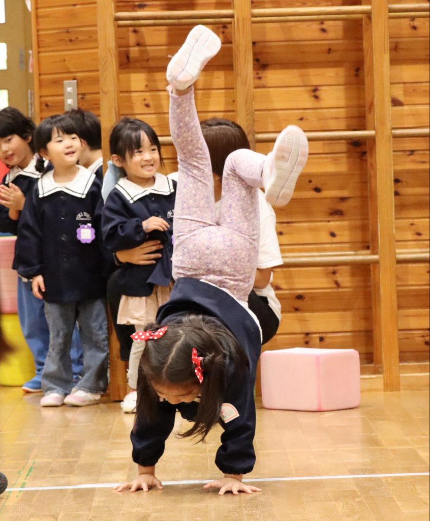 逆立ちやブリッジ歩き… 得意技を披露してくれる子供達(笑)